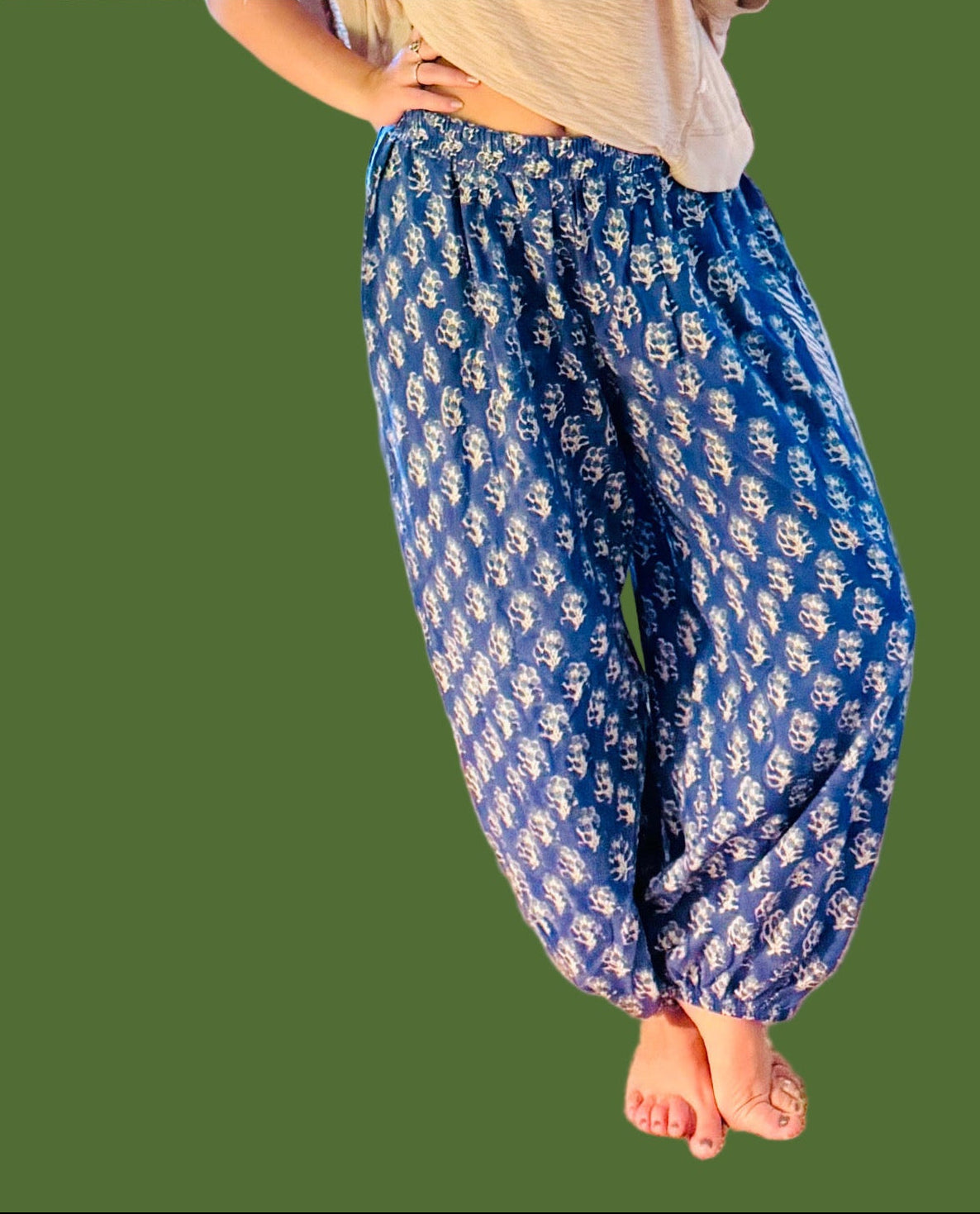 Super easy on/ off with these soft balloon pants - JUST the right amount of stretch in elasticized waist and the ankles.